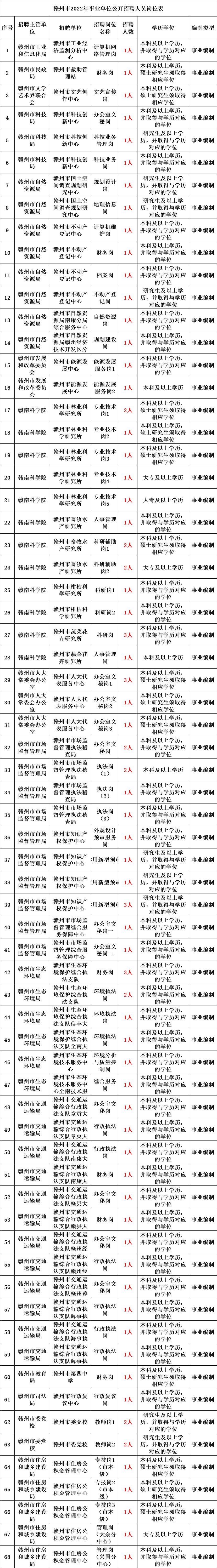 赣州市2022年事业单位公开招聘人员公告