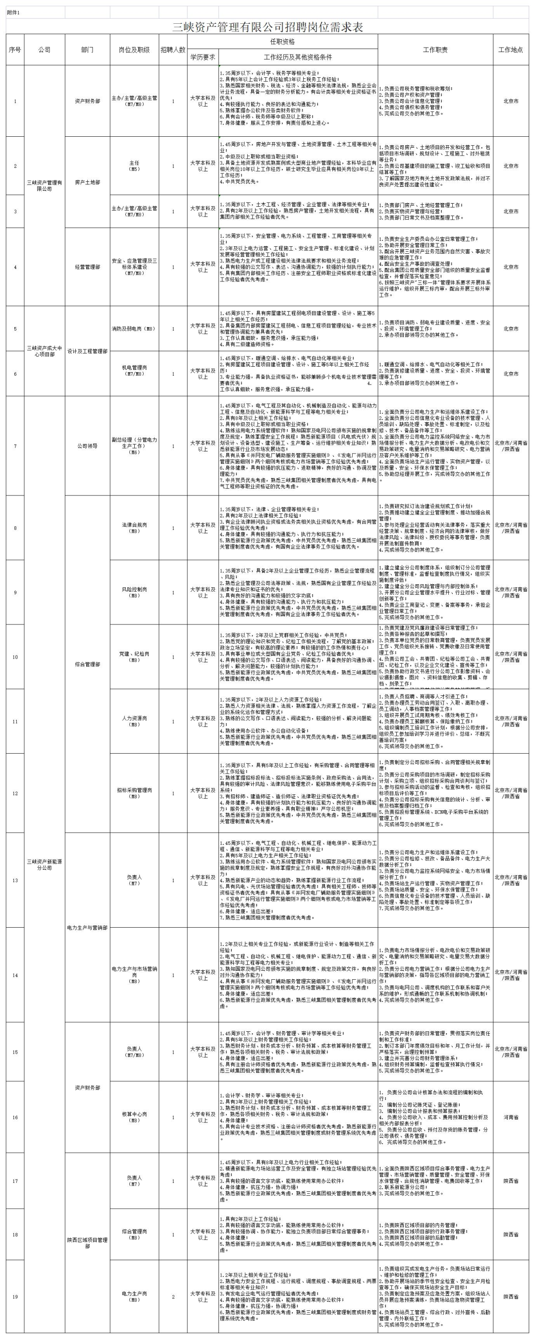 附件:1.三峡资产管理有限公司招聘岗位需求表