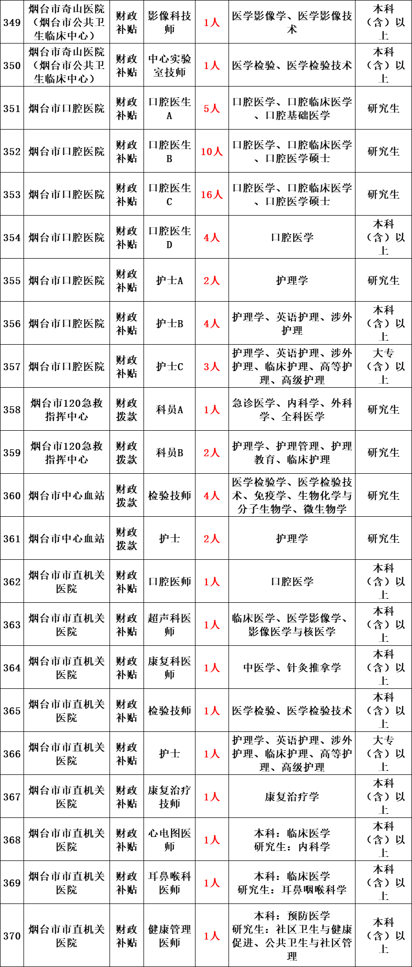 按照《事业单位人事管理条例》(国务院令第652号)等规定,2022年烟台市卫生健康委员会所属事业单位卫生类岗位面向社会公开招聘工作人员801名(招聘岗位要求详见附件1)。现公告如下: