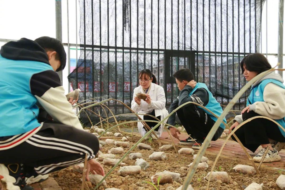 2022年3月24日,贵州遵义,播州中等职业学校现代农艺专业部教师带着学生在羊肚菌实训基地学习。 (视觉中国/图)