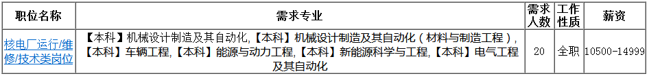 公司招聘的各类岗位主要职责为参与核电厂建设、生产准备、运行及经营管理等,具体如下: