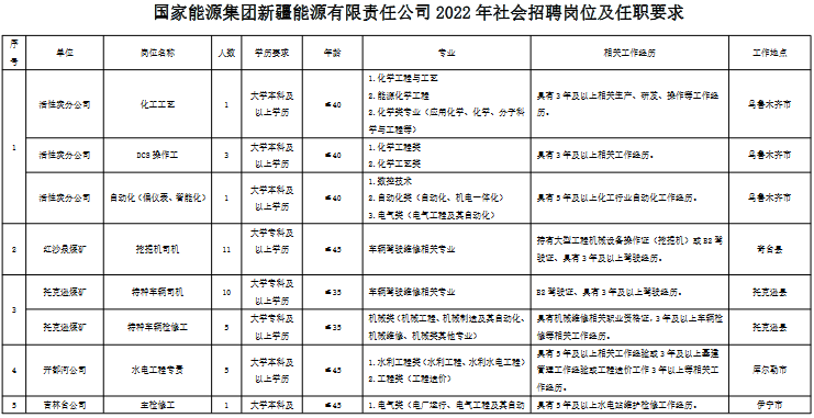 国家能源集团新疆能源有限责任公司2022年社会招聘65人公告