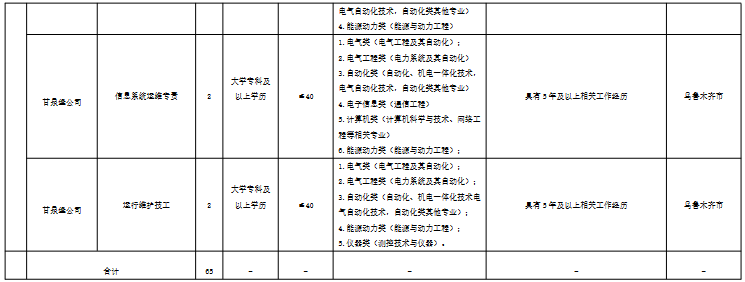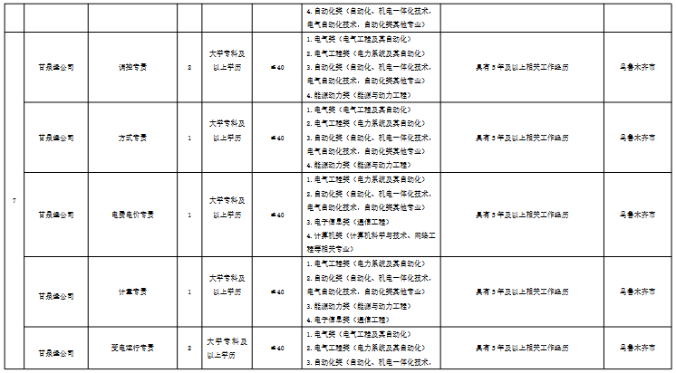 四川江油 | 40周岁及以下 | 大专及以上 | 动力类、机械类或其他电力生产相关专业 | 具有300MW及以上机组汽机辅机检修5年以上工作经验。 | |