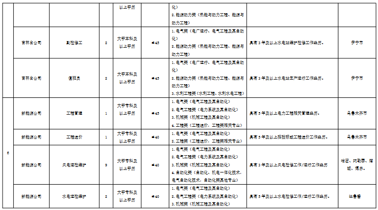 四川江油 | 40周岁及以下 | 大专及以上 | 动力类、电气类、控制类或其他电力生产相关专业 | 具有300MW及以上机组暖通检修5年以上工作经验。 | |