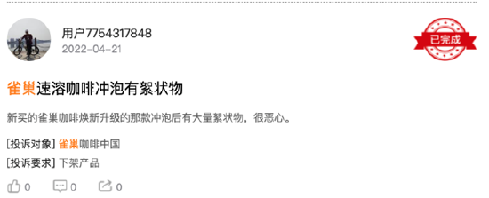 2015年1月、2月,3批德国进口的雀巢速溶咖啡因标签不合格登上国家质检总局黑榜;近400吨未过期的雀巢咖啡在广东东莞被销毁,市值近千万。2017年,雀巢在48天卷入5起负面事故,大部分食品安全问题都出自原料环节。