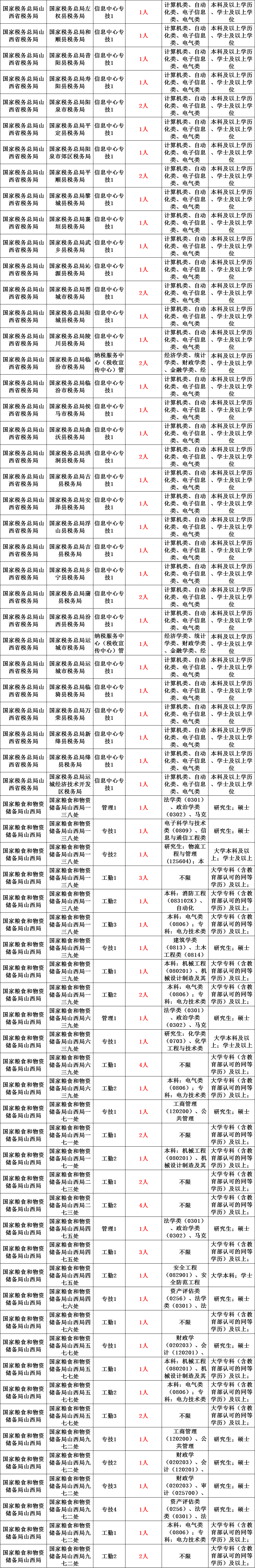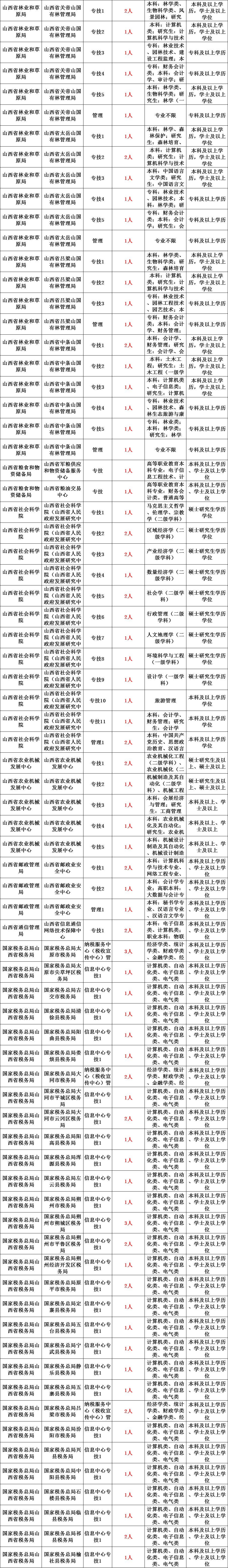 参加本次公开招聘笔试的有省委办公厅、省委网信办、省委军民融合办、省委老干部局、省直机关事务管理局、省人大、省政协、省检察院、省总工会、团省委、省妇联、省残联、省科协、山西日报社、省发改委、省教育厅、省科技厅、省公安厅、省工信厅、省民政厅、省司法厅、省财政厅、省自然资源厅、省交通运输厅、省水利厅、省农业农村厅、省退役军人事务厅、省应急管理厅、省审计厅、省市场监管局、省广播电视局、省体育局、省行政审批服务管理局、省地方金融监督管理局、省能源局、省文物局、省监狱管理局、省林草局、省粮食和物资储备局、省社科院、省农业机械发展中心、省邮政管理局、省通信管理局等43个部门所属的119个事业单位,以及国家税务总局山西省税务局、国家粮食和物资储备局山西局所属的71个事业单位,共计招聘713人。