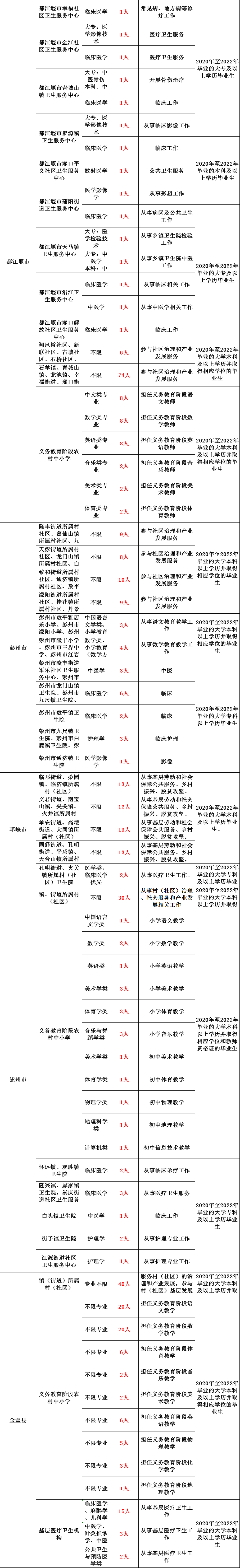 2022年成都基层项目招聘1158人