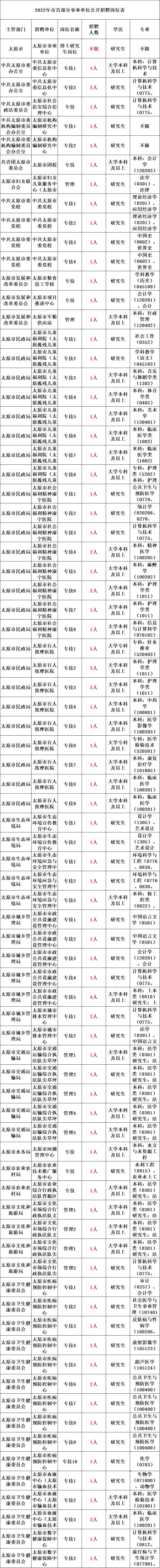 结合省下达我市的招聘计划,决定组织实施2022年市直事业单位公开招聘工作,为中共太原市委信息化中心等110个事业单位公开招聘工作人员433名。