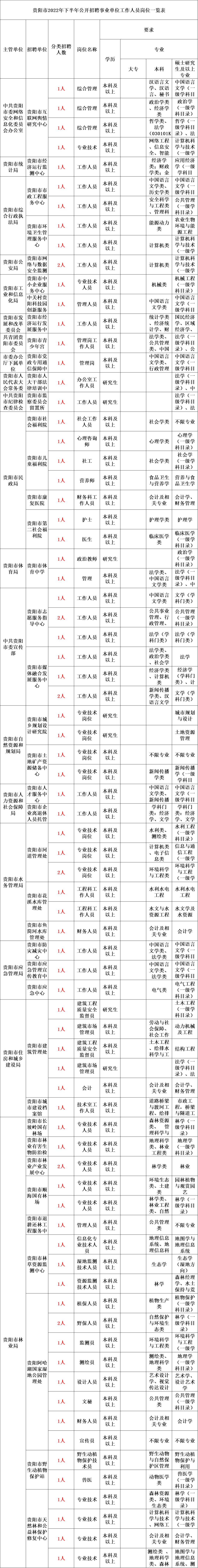 附件2:贵阳市2022年下半年公开招聘事业单位工作人员岗位一览表
