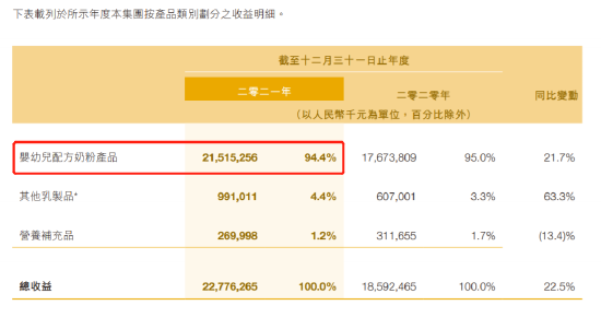 截至2021年,公司市场占有率约为19.2%,全年平均市占率为18.6%,与去年同期相比增长21.6%。而2021年,公司整体毛利率超过70%,同期的伊利奶粉和奶制品业务毛利率为39.2%,澳优(6.47, -0.01, -0.15%)毛利率为50.4%,贝因美毛利率为46.9%。中国飞鹤更在自己2021年初的高光时刻,市值一度超过2000亿港元。