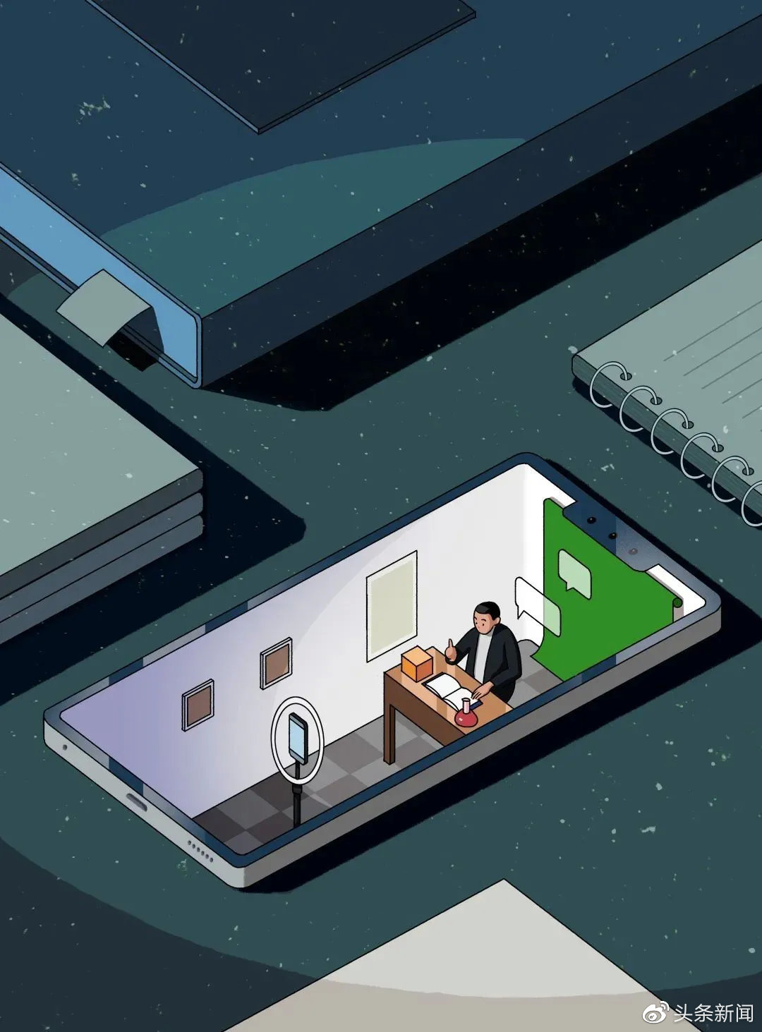 他记得他的声音充满了整间教室。台下是一排一排空空荡荡的课桌和椅子,他想象同学们穿着隐身衣坐在那里——他感觉听众们不再是冷冰冰的摄像头和麦克风,而是教室里一个一个的“人”。