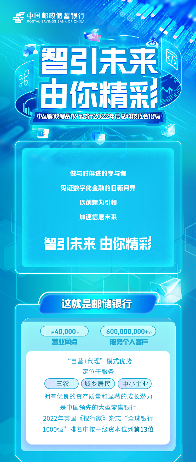 邮政储蓄银行2022年社会招聘!薪资过万!六险二金!双休+各种福利...