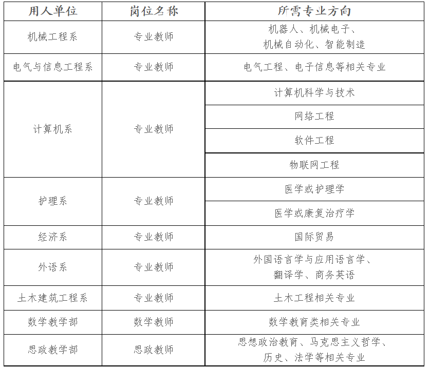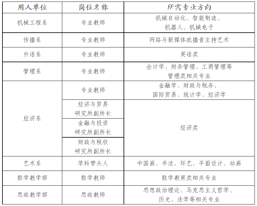 (三)应聘中青年教师岗位的需具备硕士研究生及以上学历,高层次人才岗位需具备博士研究生学历或硕士研究生学历副教授职称;