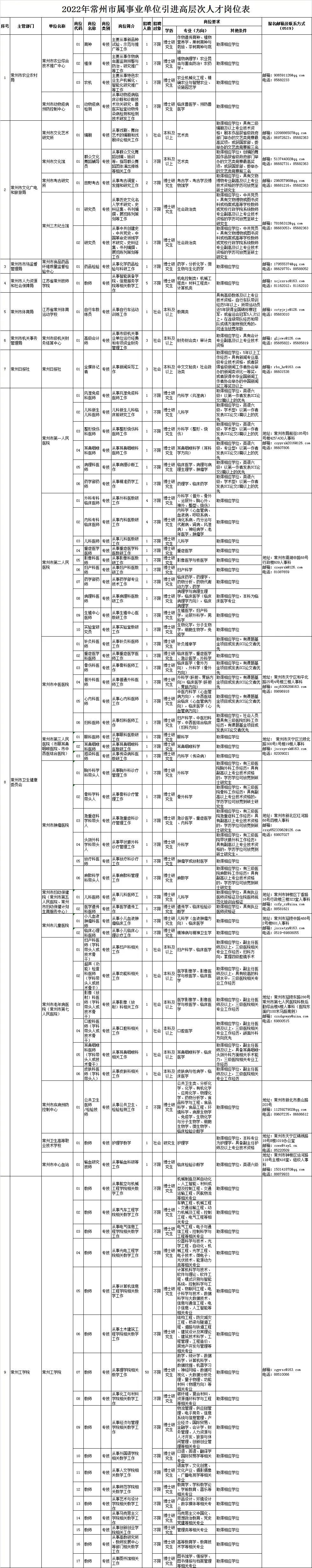 为深入推进人才强市战略,优化提升事业单位人才结构,根据《江苏省事业单位公开招聘人员办法》(苏办发〔2020〕9号)、《关于创新市属事业单位编制人事管理服务高层次人才引进的通知》(常组发〔2020〕26号)等精神,2022年常州市属事业单位将面向社会招聘引进124名高层次人才(进编)。现将有关事项公告如下:
