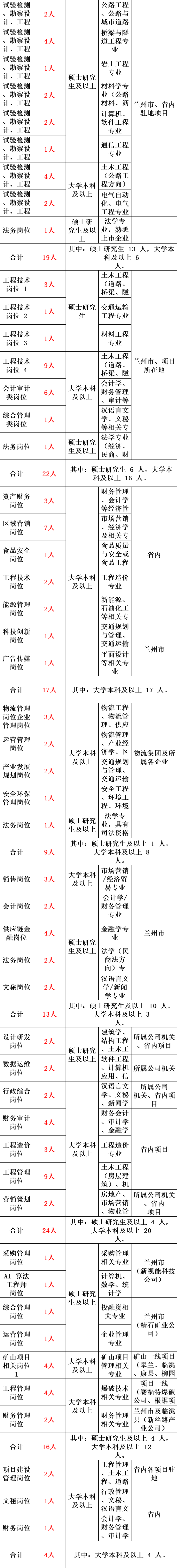 为加强集团公司人才队伍建设,强化人才储备,甘肃公交建集团于2022年9月开展2023届应届毕业生招聘。现将有关事项公告如下:
