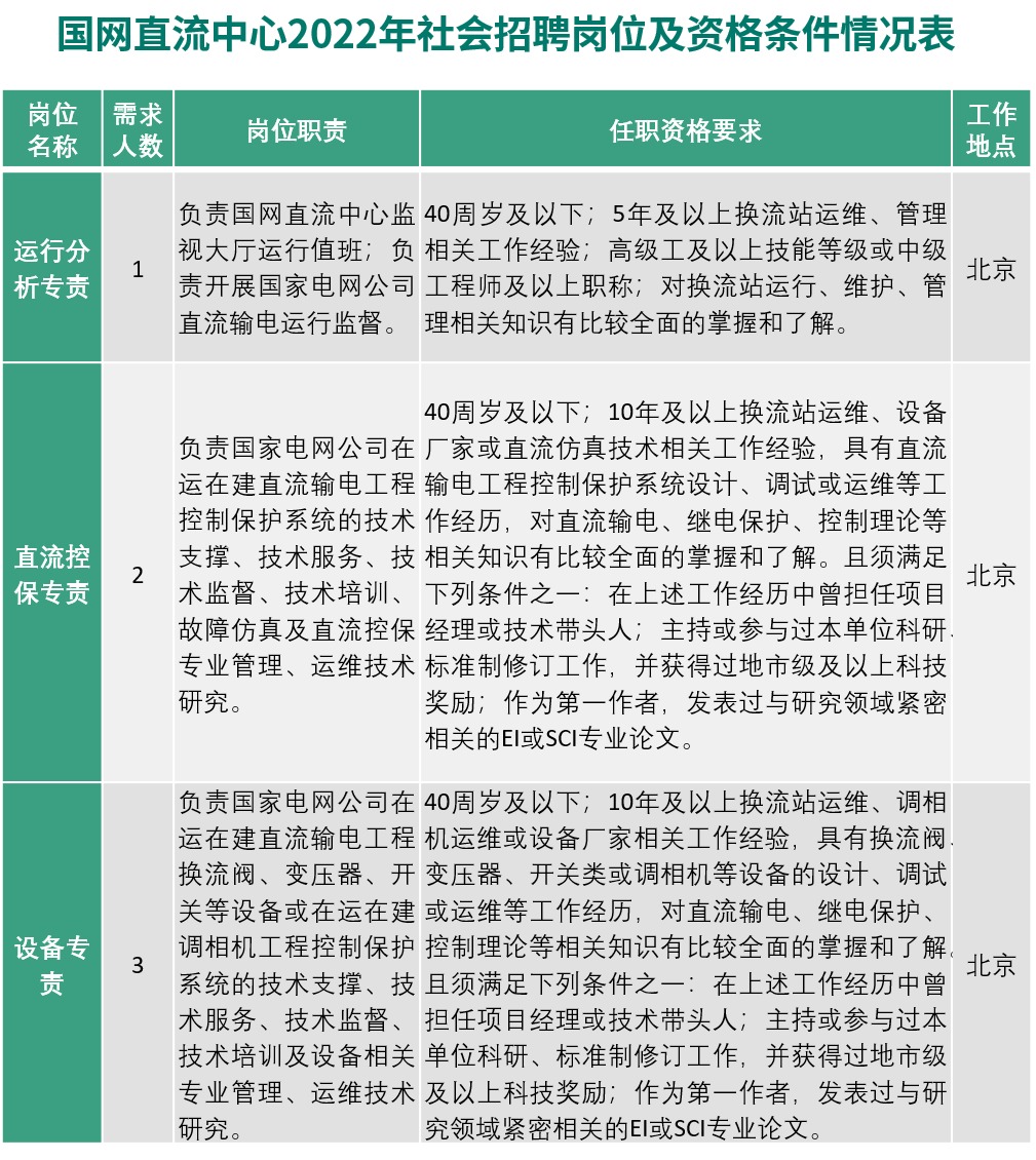 1.国网直流中心2022年社会招聘岗位及资格条件情况表