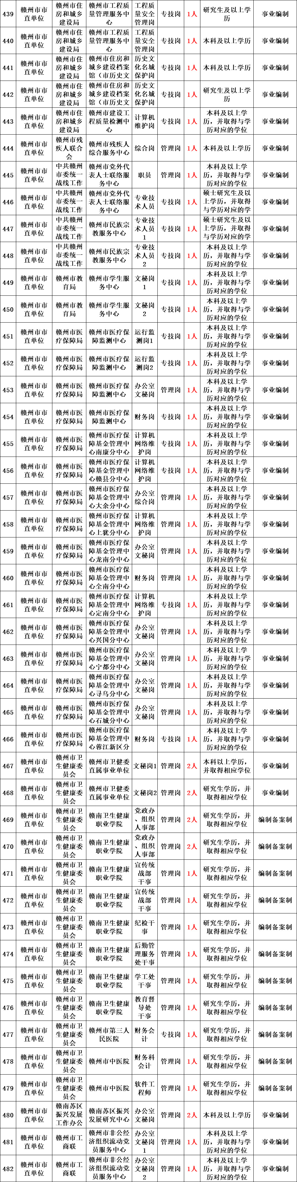 本次招聘共计482个岗位、588个计划,具体招聘岗位、条件及招聘人数详见《赣州市2022年下半年事业单位公开招聘人员岗位表》。