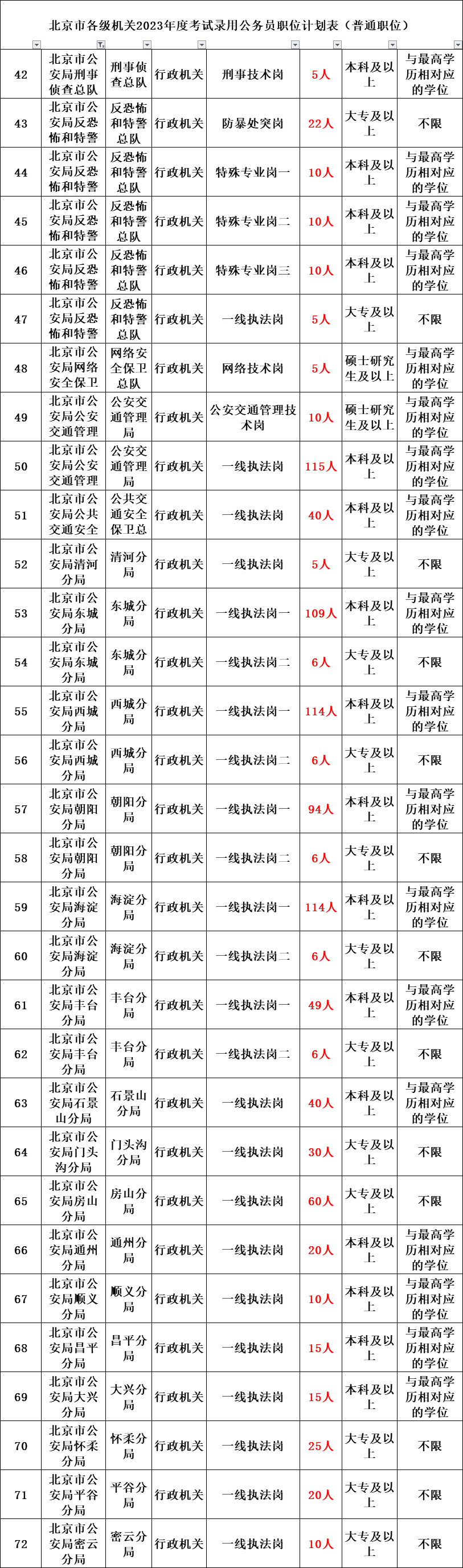 北京市各级机关2023年度考试录用公务员公告