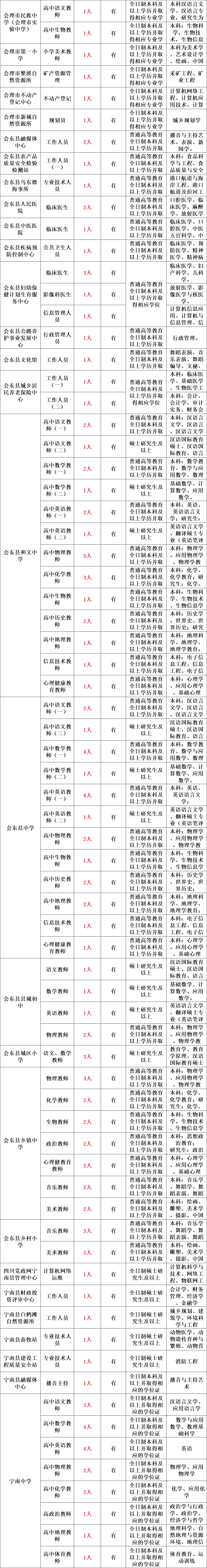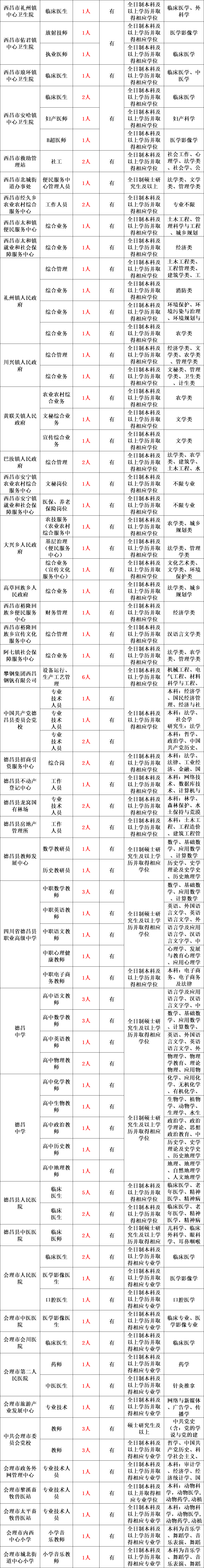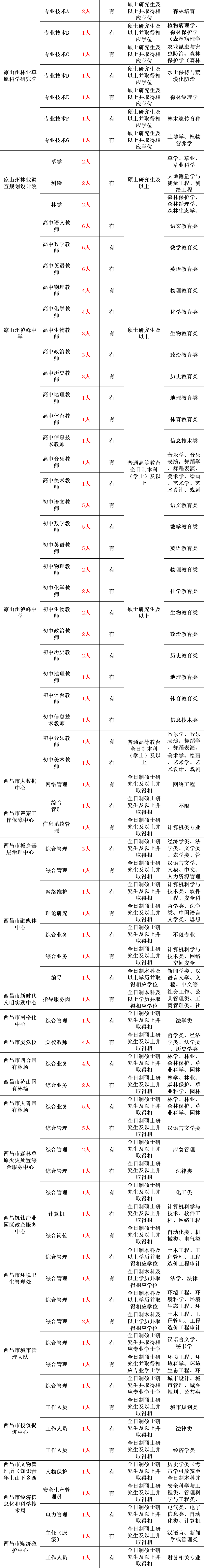 具体岗位请登录四川省人力资源和社会保障厅人事考试专栏(http://202.61.89.231/index.aspx)、凉山州人力资源和社会保障局人事考试专栏(http://rsj.lsz.gov.cn/)、昆明理工大学、成都理工大学等院校的官方招生就业网站查询。