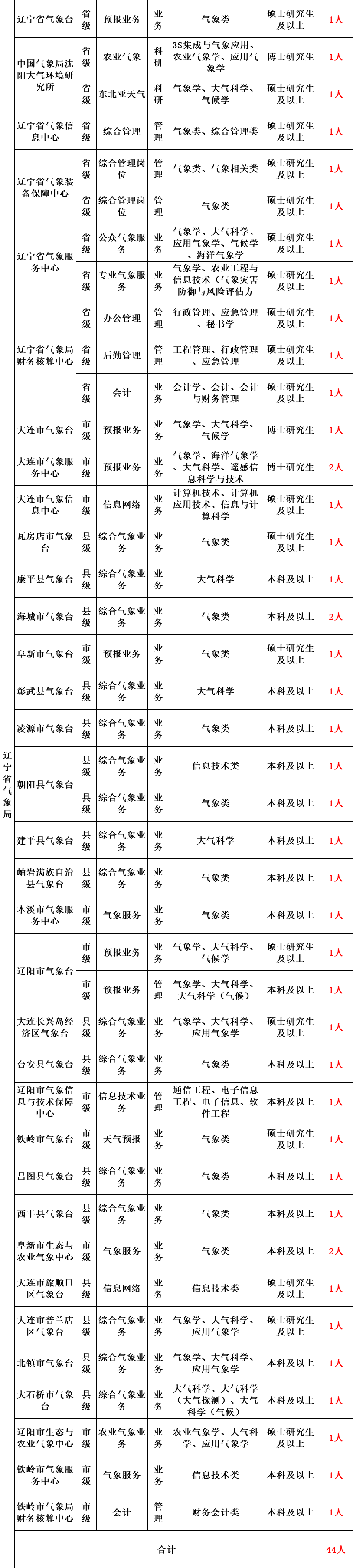 气象类、气象相关类、数学物理类、信息技术类、媒体传播类、教育培训类、财务会计类和综合管理类等。