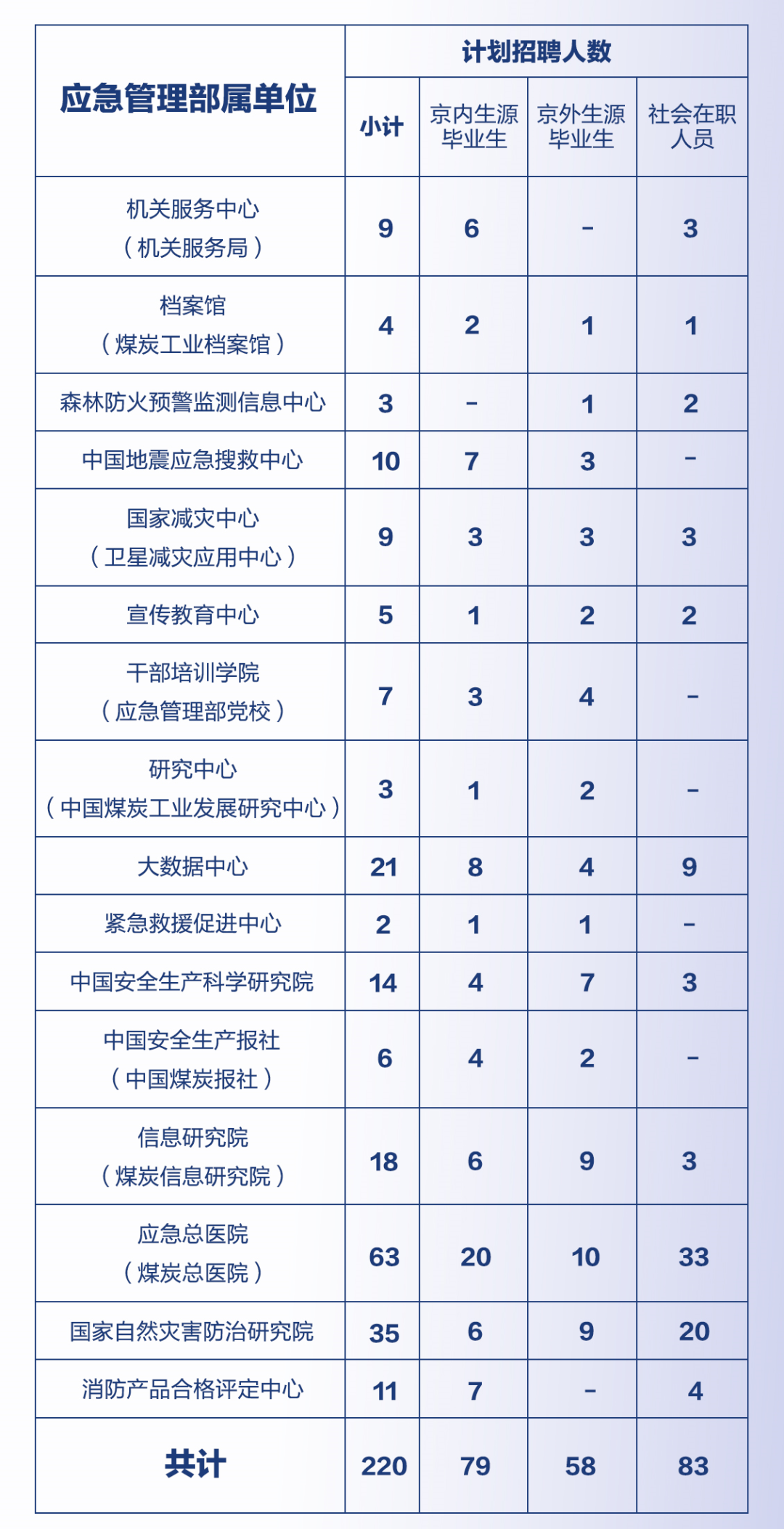 根据工作需要,应急管理部所属单位计划面向应届毕业生和社会在职人员公开招聘工作人员。