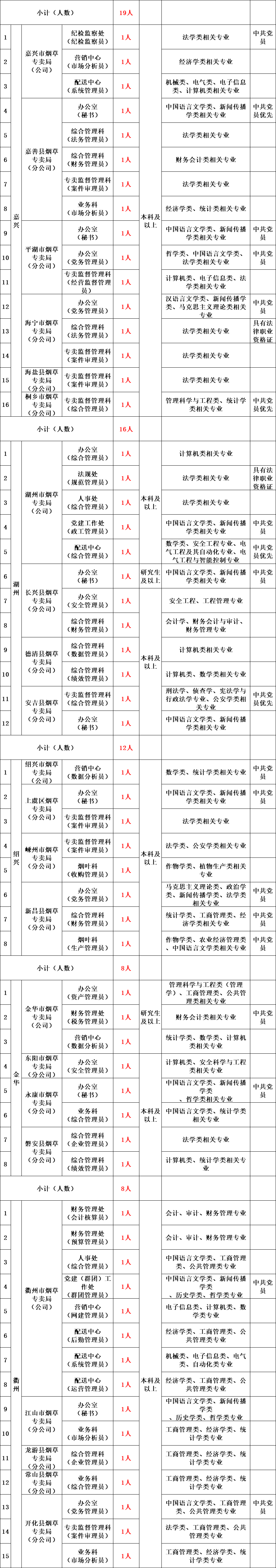 2023年浙江省烟草专卖局(公司)管理类岗位招聘公告(147人)