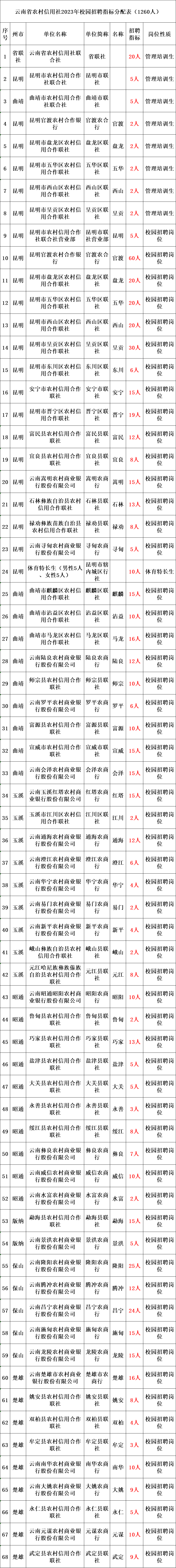 (一)管理培训生:省联社内设部门,昆明、曲靖市联社内设部门,昆明市辖内城区行社岗位