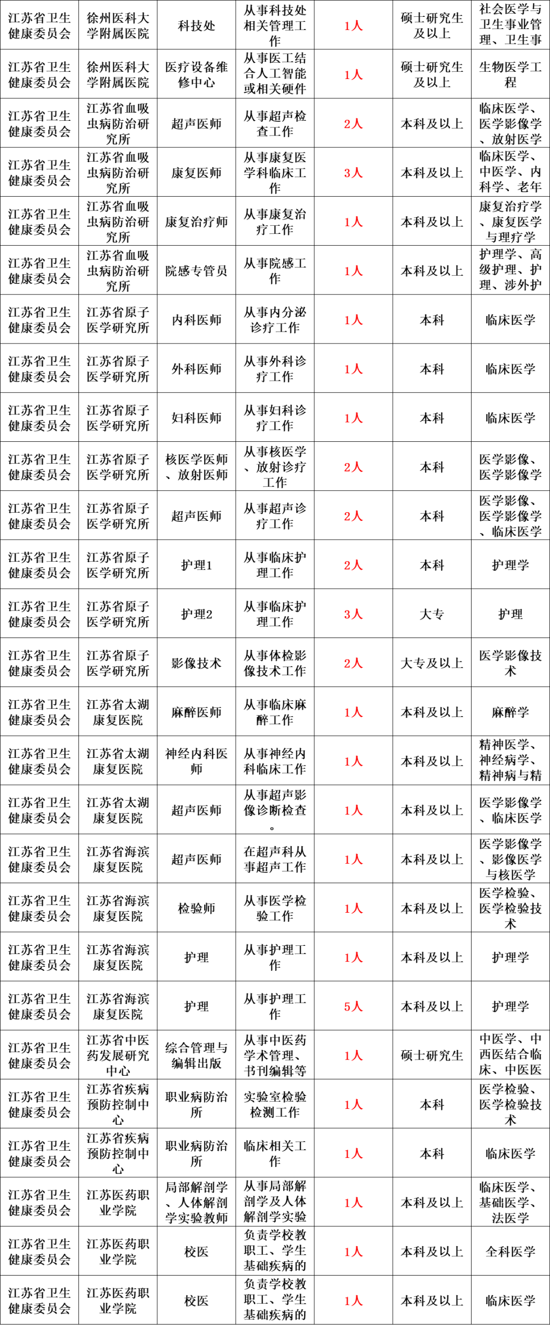 为更好地选拔优秀人才,充实事业单位人才队伍,优化人员结构,江苏省卫生健康委员会直属事业单位现决定面向社会公开招聘工作人员。现将有关事项公告如下: