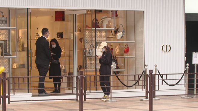 尖沙咀广东道作为旅客购物热点,在春节期间十分热闹,进入部分店铺更需要排队。