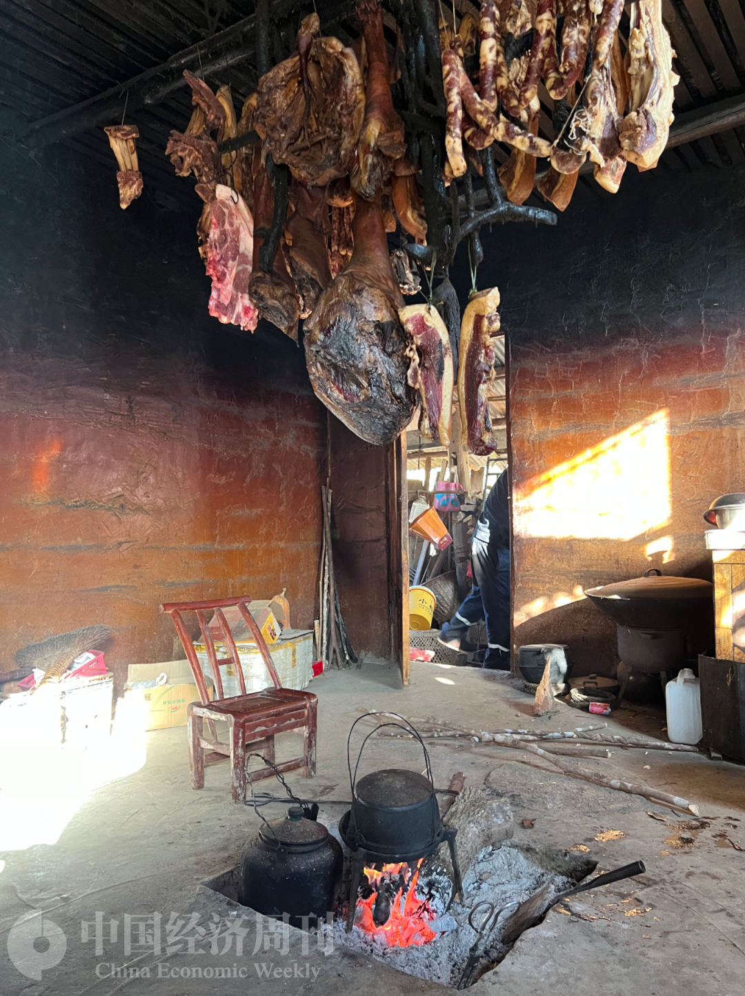 李明利家的火塘与腊肉 摄影:《中国经济周刊》记者 李永华