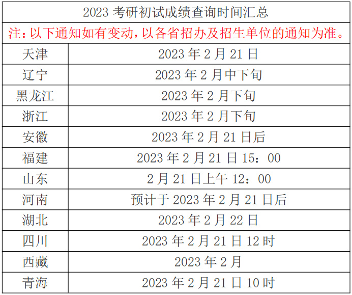 初试成绩查询时间