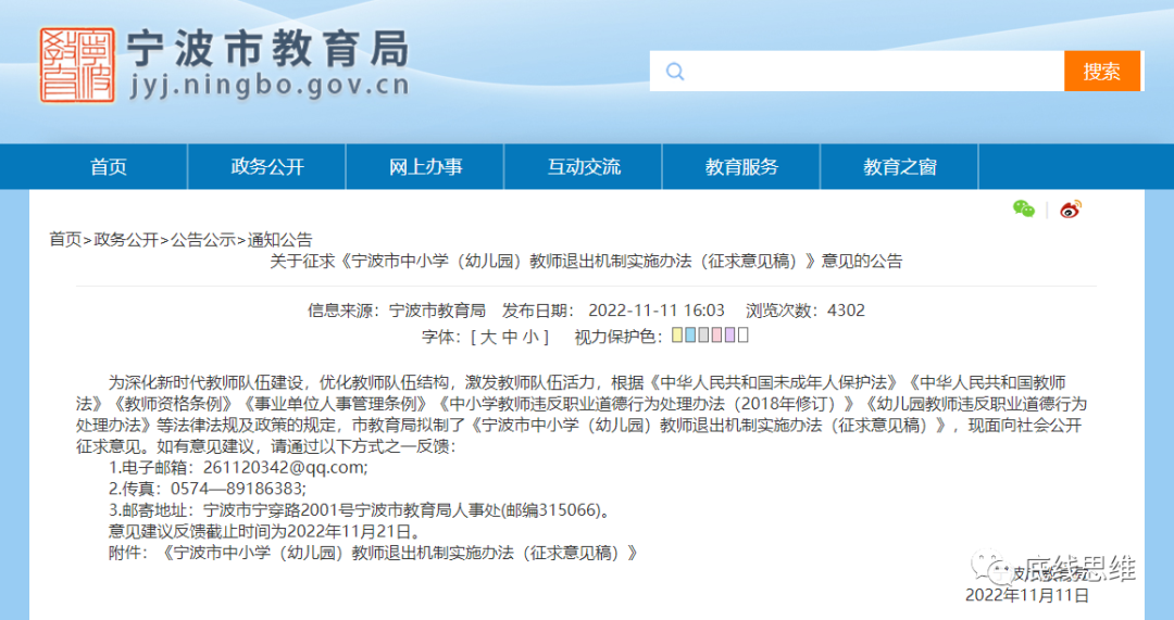 意见发布之后在网络上引发网友讨论和较大恐慌。而宁波之后,又有北京提出要建立中小学教师退出机制。