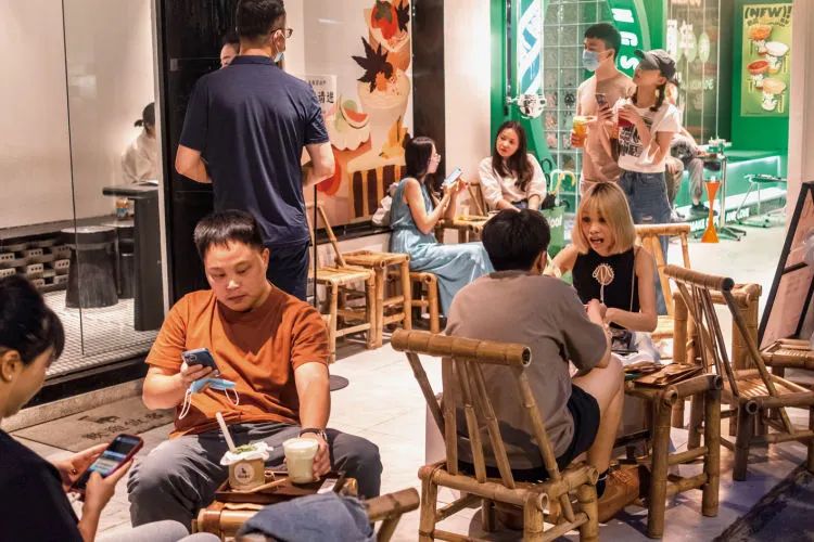 2022年10月16日,广州。在饮品店消费的年轻人。(图/ 高菲)