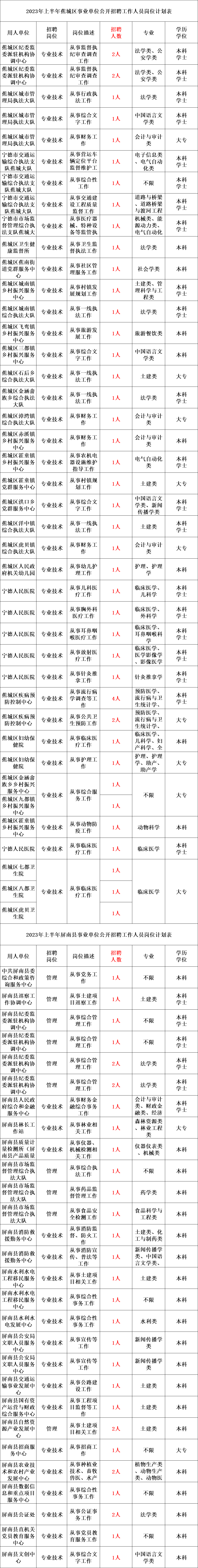 根据《宁德市事业单位公开招聘工作暂行办法》,现将2023年上半年事业单位公开招聘工作人员有关事项公告如下: