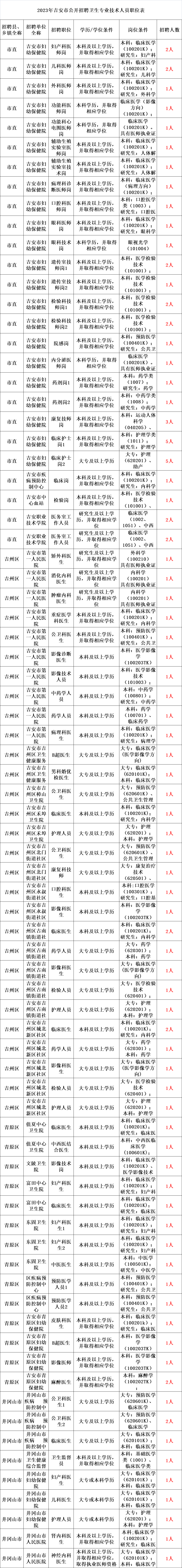 本次公开招聘计划招聘工作人员975名,具体情况详见《2023年吉安市事业单位公开招聘工作人员职位表》。