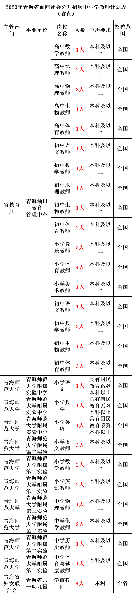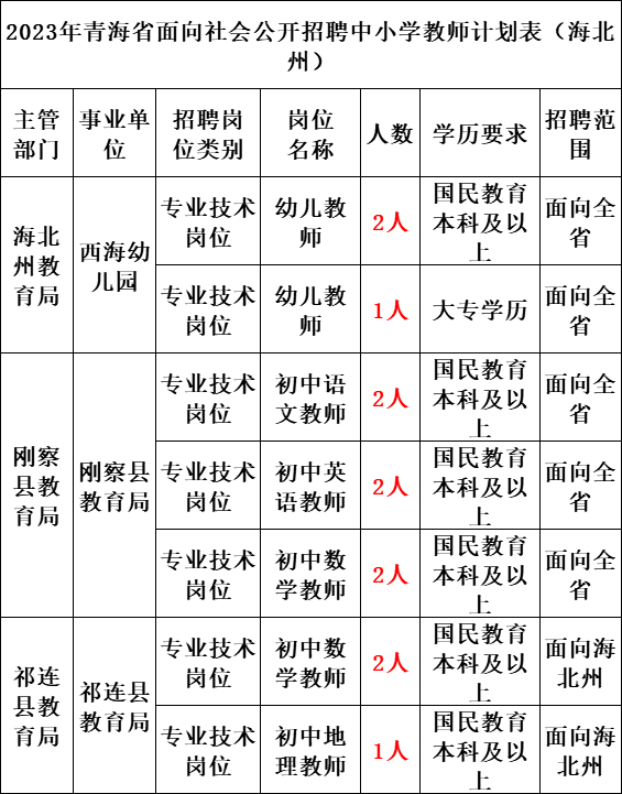 此次全省公办中小学教师公开招聘范围分别为面向全国、全省和本州。面向全省范围招聘的岗位,报考人员包括本省户籍、本省生源、本省院校毕业生、在本省服务的“三支一扶”计划等三类基层项目高校毕业生、本省临聘教师、应由本省安置的退役士兵(含在我省服役期满的退役士兵);面向本州范围招聘的岗位,报考人员包括本州户籍、本州生源、本州院校毕业生、在本州服务的“三支一扶”计划等三类基层项目高校毕业生、本州临聘教师、应由本州安置的退役士兵(含在本州服役期满的退役士兵)。此次招聘每人限报1个岗位。