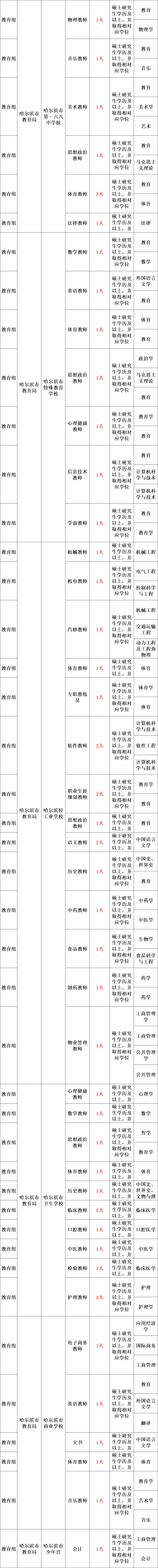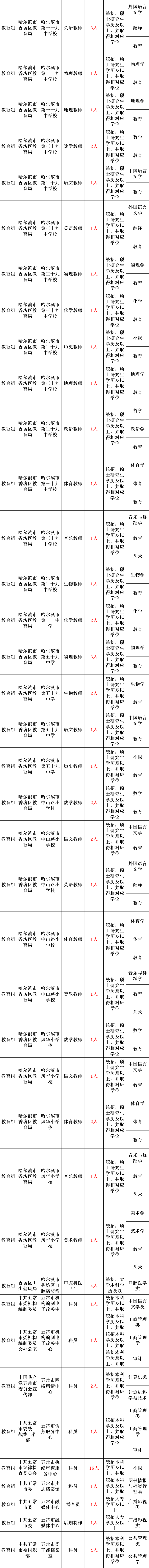 此次引才招聘事业单位工作人员2615人。具体招聘岗位、人数、条件等详见《2023年度哈尔滨“丁香人才周”(春季)事业单位引才招聘计划表》(以下简称《招聘计划表》)。