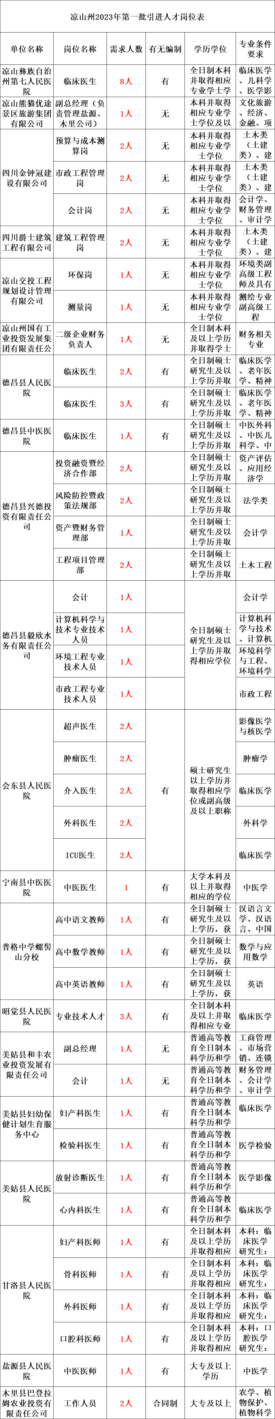 为大力推进人才强州战略,凉山州决定实施2023年第一批引才行动,面向全国公开引进急需紧缺专业人才,现将相关事宜公告如下。