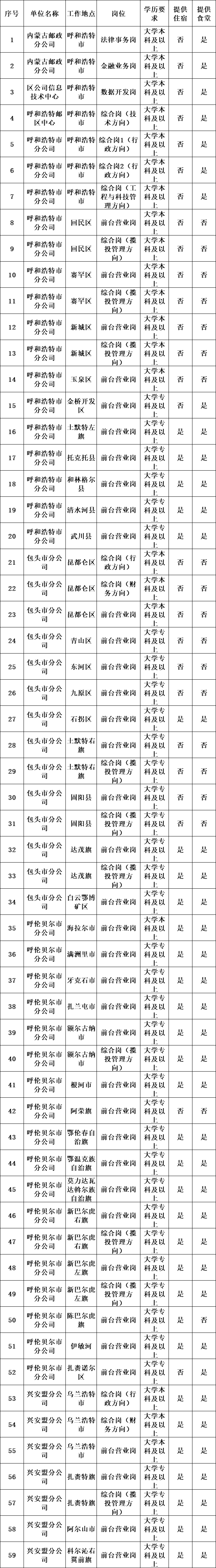 中国邮政集团有限公司内蒙古自治区分公司本次面向全国范围招聘2021-2023届普通高等院校毕业生,个别地区放宽至2020届普通高等院校毕业生。本次招聘岗位主要分布在盟市、旗县(区)营业网点,具体招聘岗位信息详情见附件。