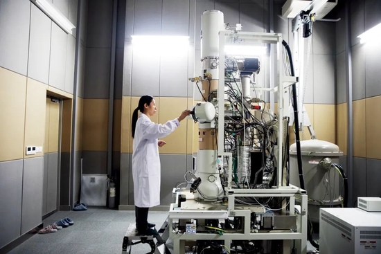 2021年5月24日,中国科学院物理研究所北京怀柔园区综合极端条件实验装置超快电镜实验室内,科研人员在调试设备。图/新华