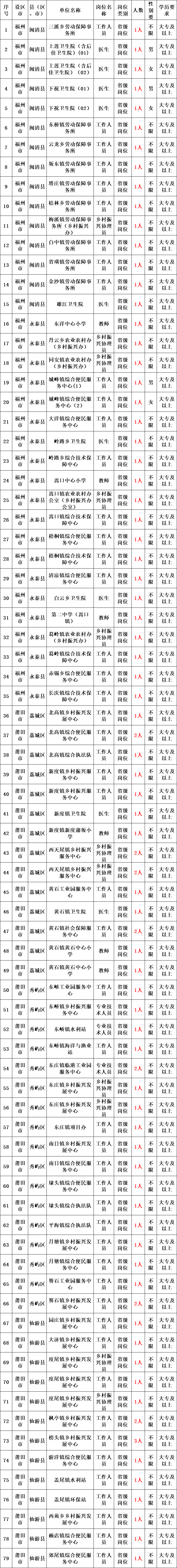 招募对象为省内全日制普通高校毕业生、省外全日制普通高校福建生源毕业生(不含成人教育培养类别等非本专科全日制高校毕业生),并具备以下条件:
