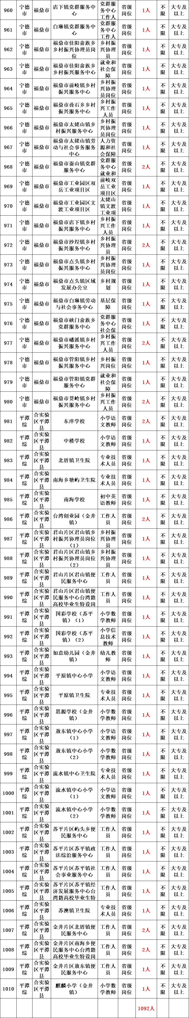 省级计划招录1092人