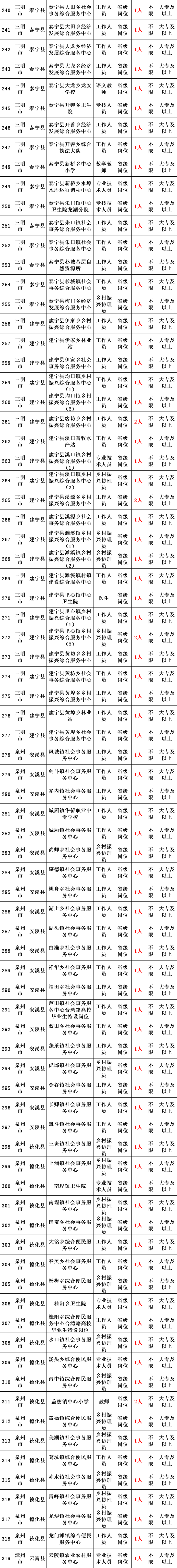 福州市、泉州市、龙岩市、三明市、莆田市市级“三支一扶”计划同步报名(具体详见各有关设区市“三支一扶”计划实施方案或招募公告),报名人员可通过“申报项目类别”“岗位类别”查询“三支一扶”计划省级或市级岗位。