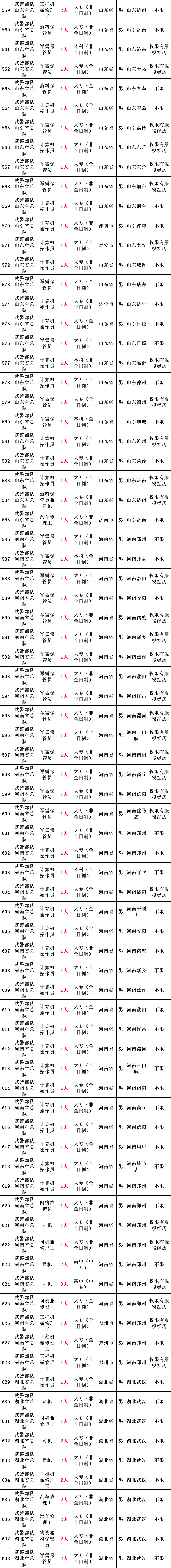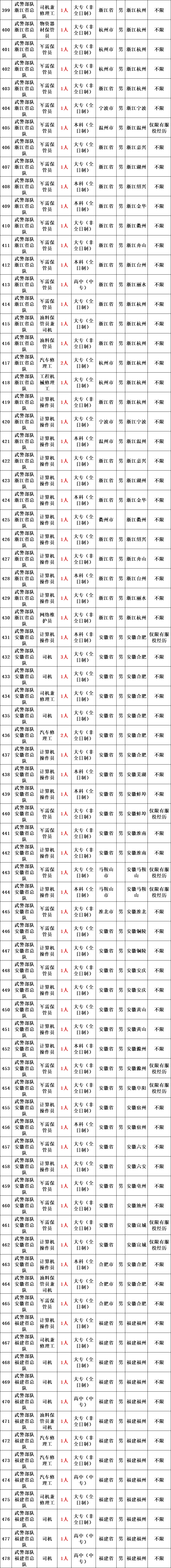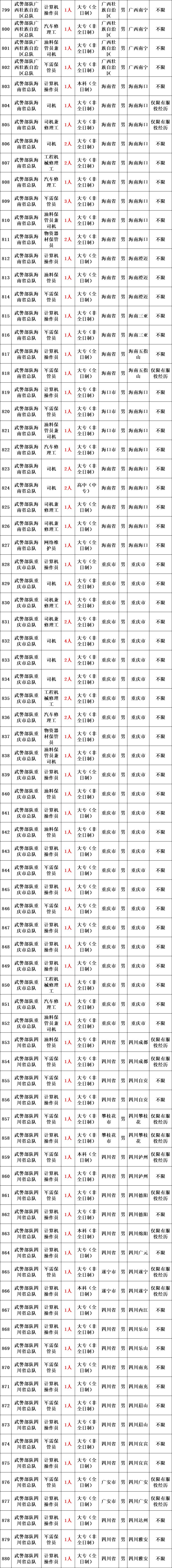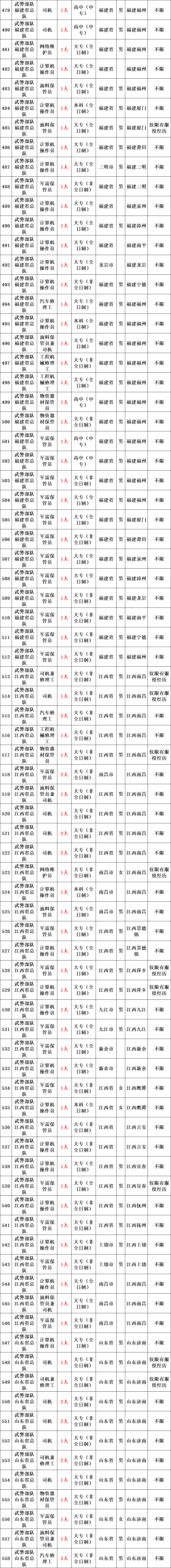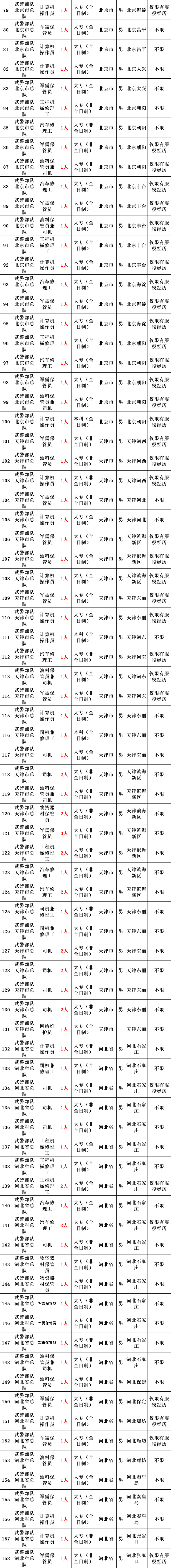武警部队所属用人单位运输投送、装备维修、物资器材储存、军犬繁育、信息通信等专业技能三级以下文职人员岗位。
