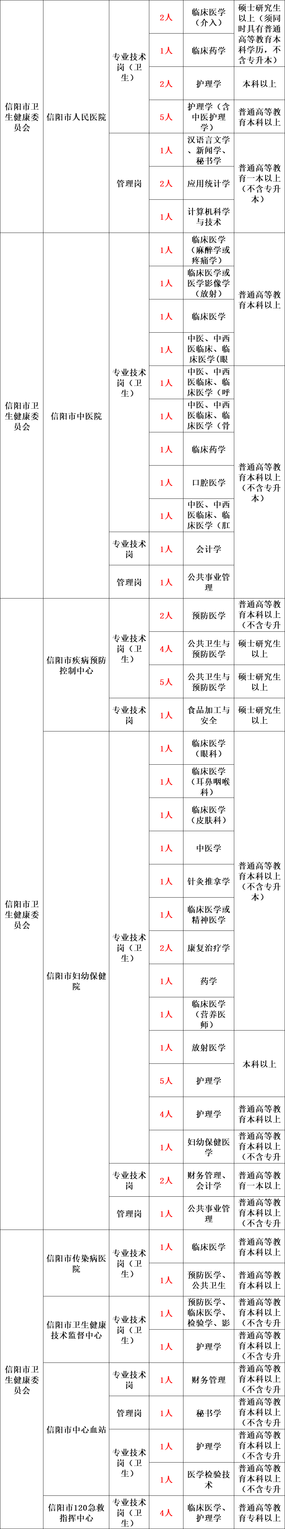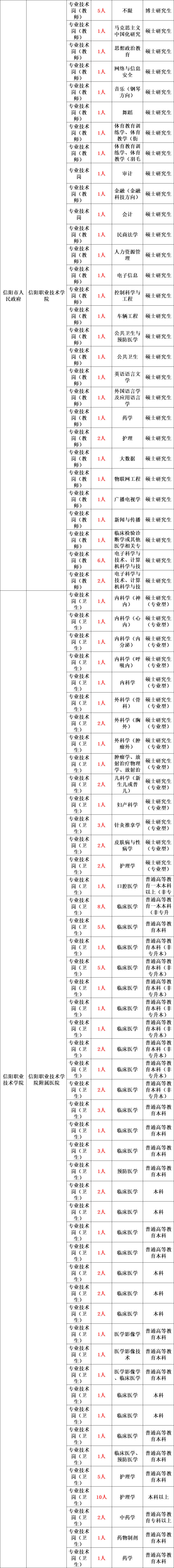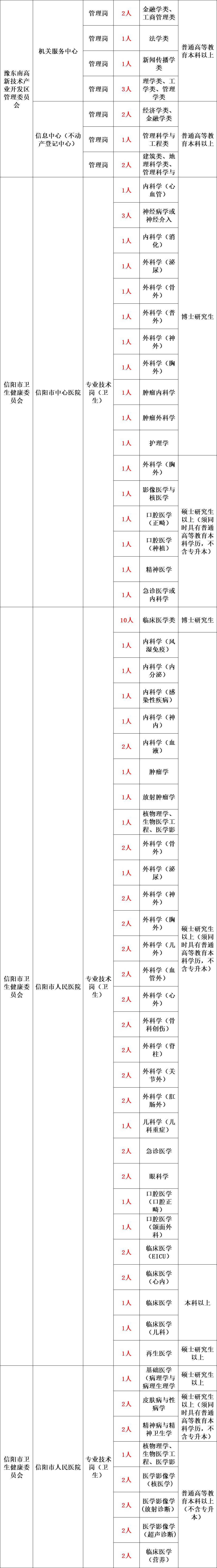 根据《事业单位公开招聘人员暂行规定》(人事部〔2005〕6号令)、《河南省事业单位公开招聘工作规程》(豫人社〔2015〕55号),信阳市市直和豫东南高新区所属事业单位面向社会公开招聘工作人员590名,现将有关事项公告如下。