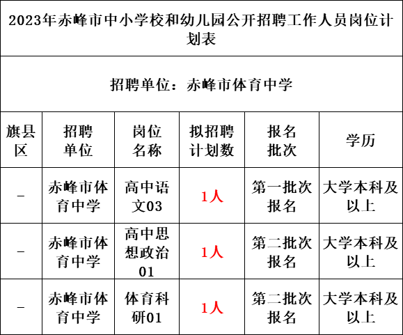 本次赤峰市中小学校和幼儿园拟公开招聘885名教师及其他岗位工作人员(含赤峰市体育中学招聘计划3人),具体招聘岗位详见附件1《2023年赤峰市中小学校和幼儿园公开招聘岗位计划表》(简称《岗位计划表》)。
