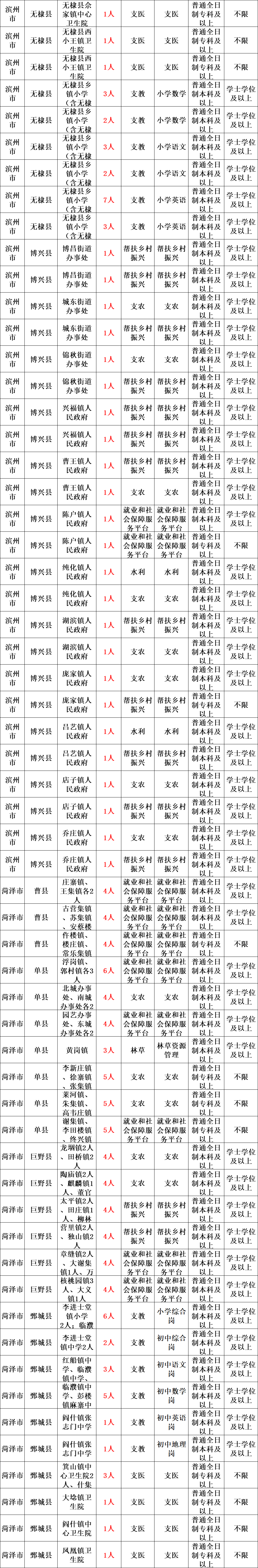2023年山东三支一扶招聘1842人