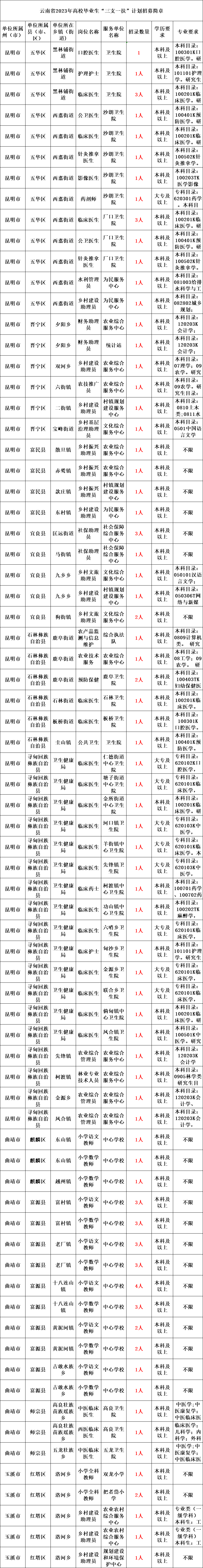 2023年计划招募“三支一扶”人员600人。招募岗位、招募人数、资格条件等详见《云南省2023年高校毕业生“三支一扶”计划招募简章》,具体请到云南人力资源和社会保障网(hrss.yn.gov.cn)查询。