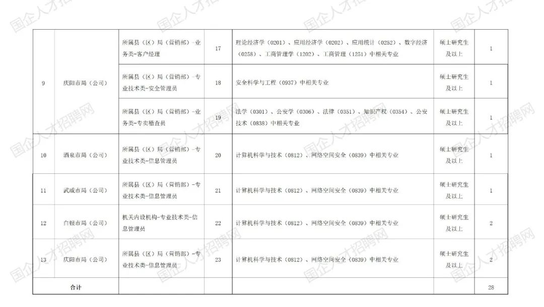 因工作需要,结合全省系统2023年应届高校毕业生招聘实际,甘肃省烟草专卖局(公司)及其所属单位在已组织开展第一批公开招聘的基础上,计划第二批公开招聘28名2023年应届高校毕业生。