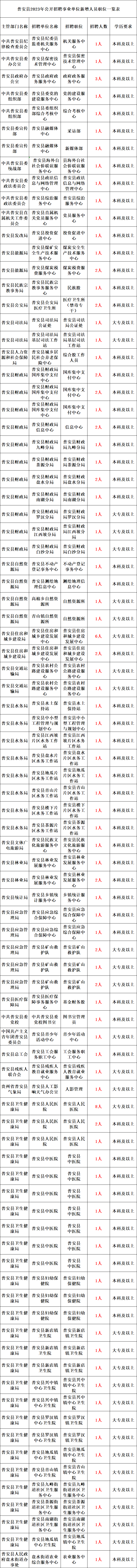 附件:1.普安县2023年公开招聘事业单位新增人员职位一览表